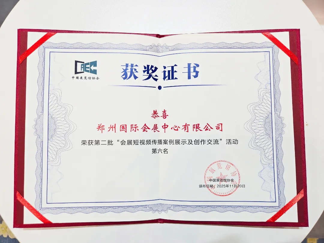 郑州国际会展中心有限公司荣获第二批“会展短视频传播案例展示及创作交流”活动第六名